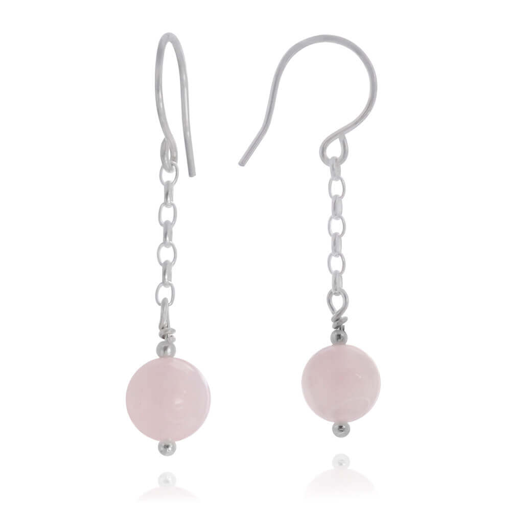 Kolczyki zwisy srebro kamień różowy kwarc łańcuszek
