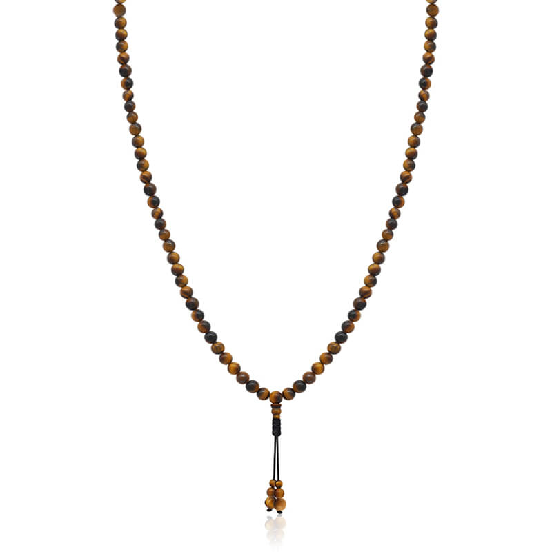 Naszyjnik buddyjski damski z kamieni tygrysie oko brązowe 8 mm naturalne (1)
