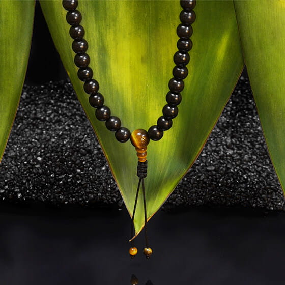 Naszyjnik buddyjski z drewna heabnu tygrysiego kamień tygrysie oko