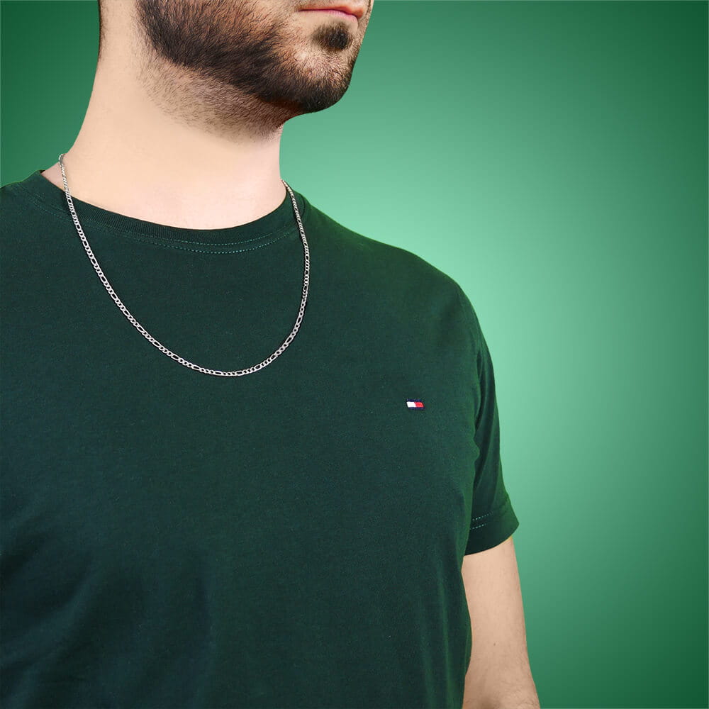 Naszyjnik figaro ze stali szlachetnej srebrny 3 mm