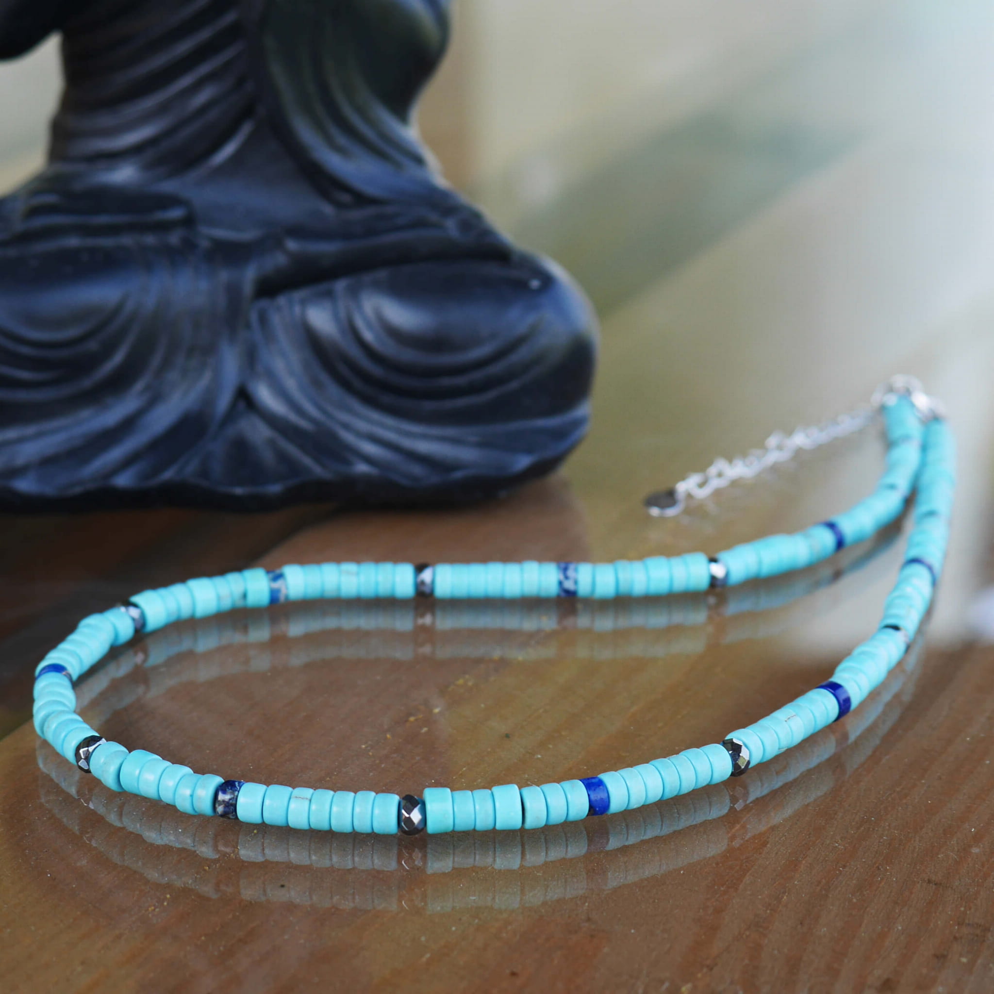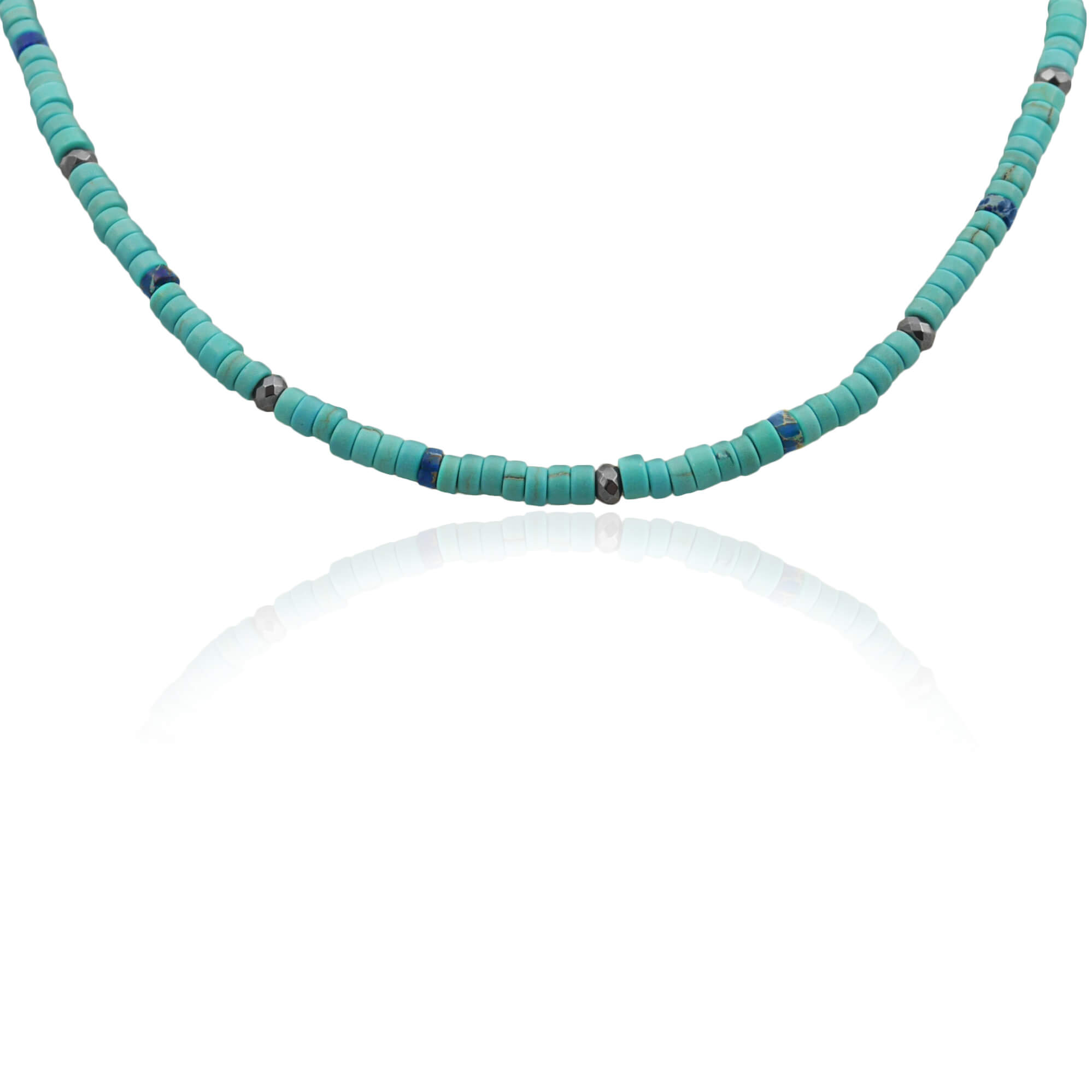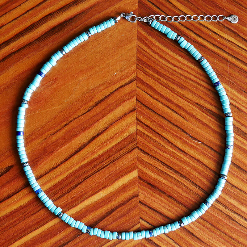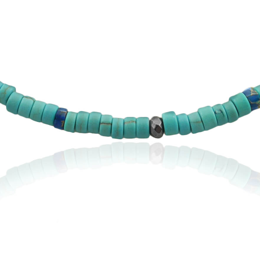 Naszyjnik z kamieni krążki howlit turkusowy hematyt jaspis niebieski