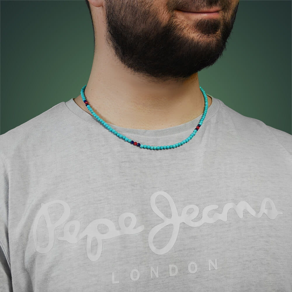 Naszyjnik z kamieni turkus sinkiang naturalny koral lapis lazuli