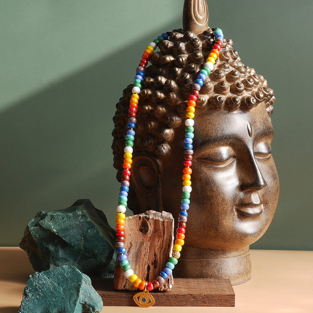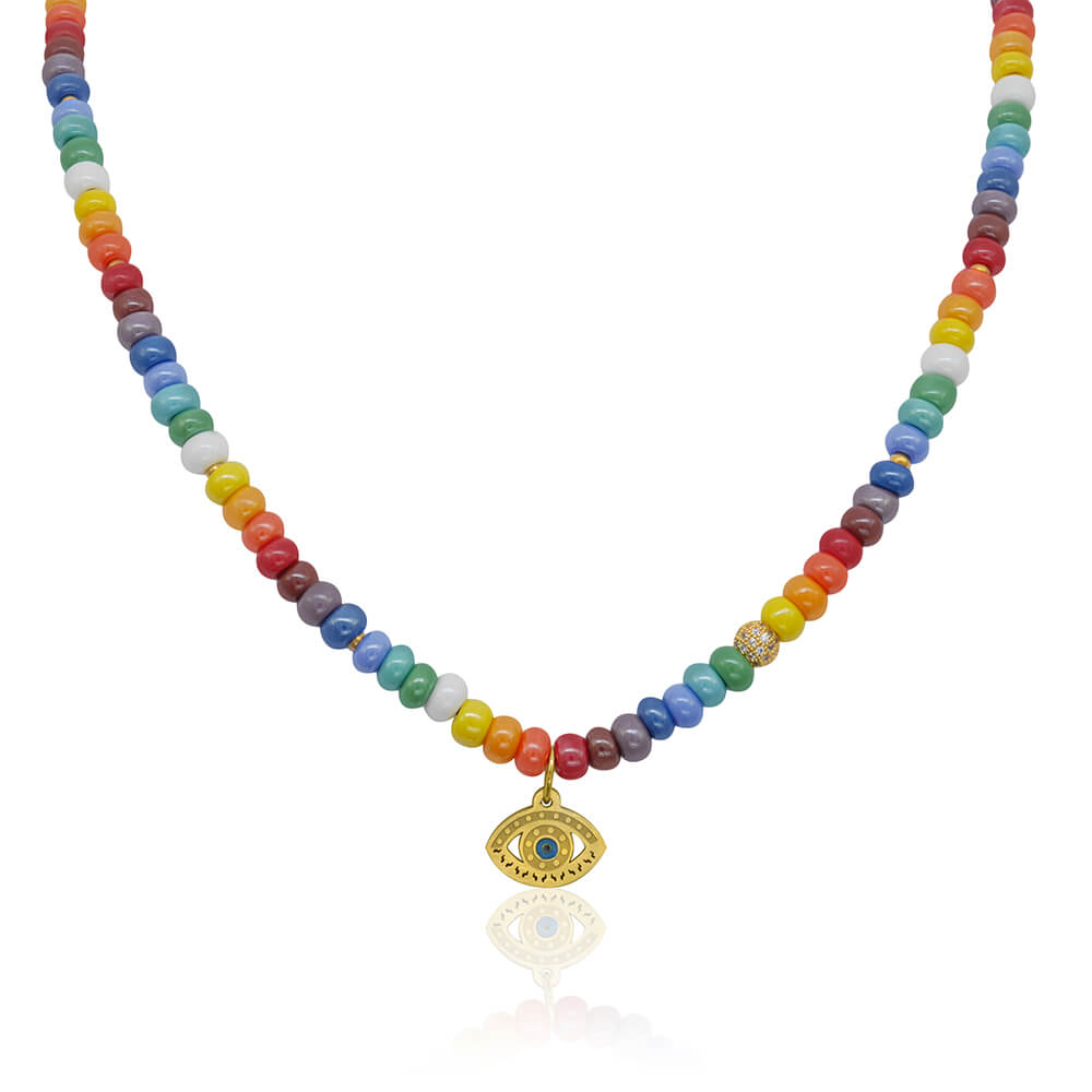 Naszyjnik z korali szklanych dużych kolorowy oko proroka stal szlachetna