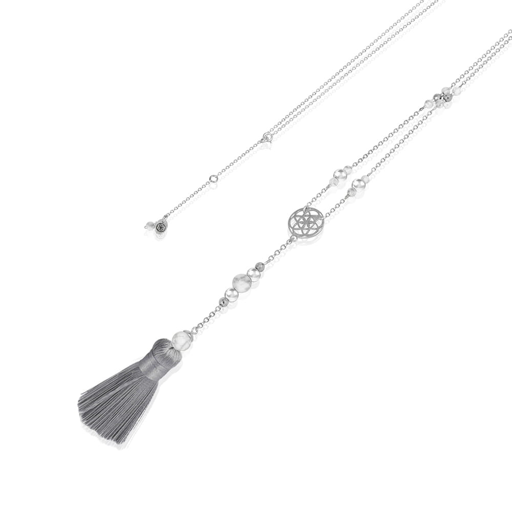 Naszyjnik ze srebra chwost hematyt howlit biały