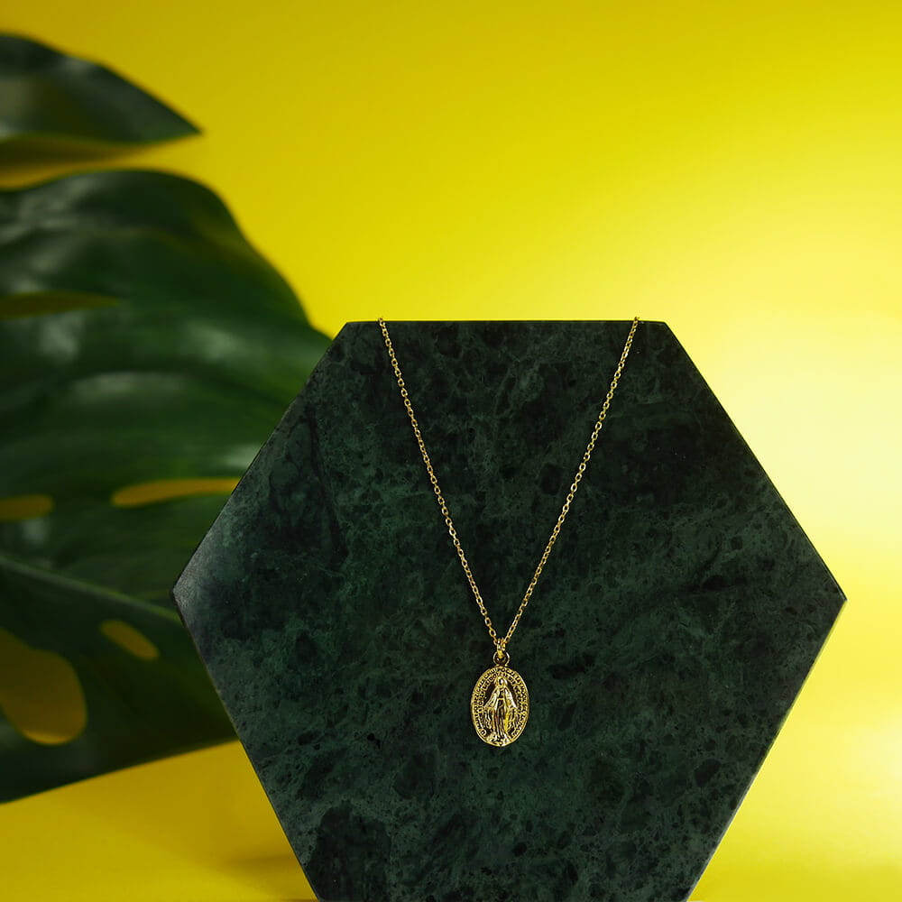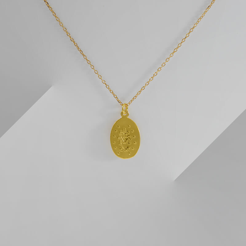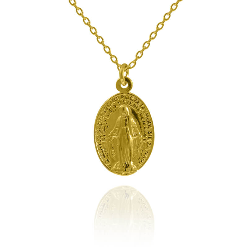 Naszyjnik ze srebra pozłacany medalik Maryi Panny ankier