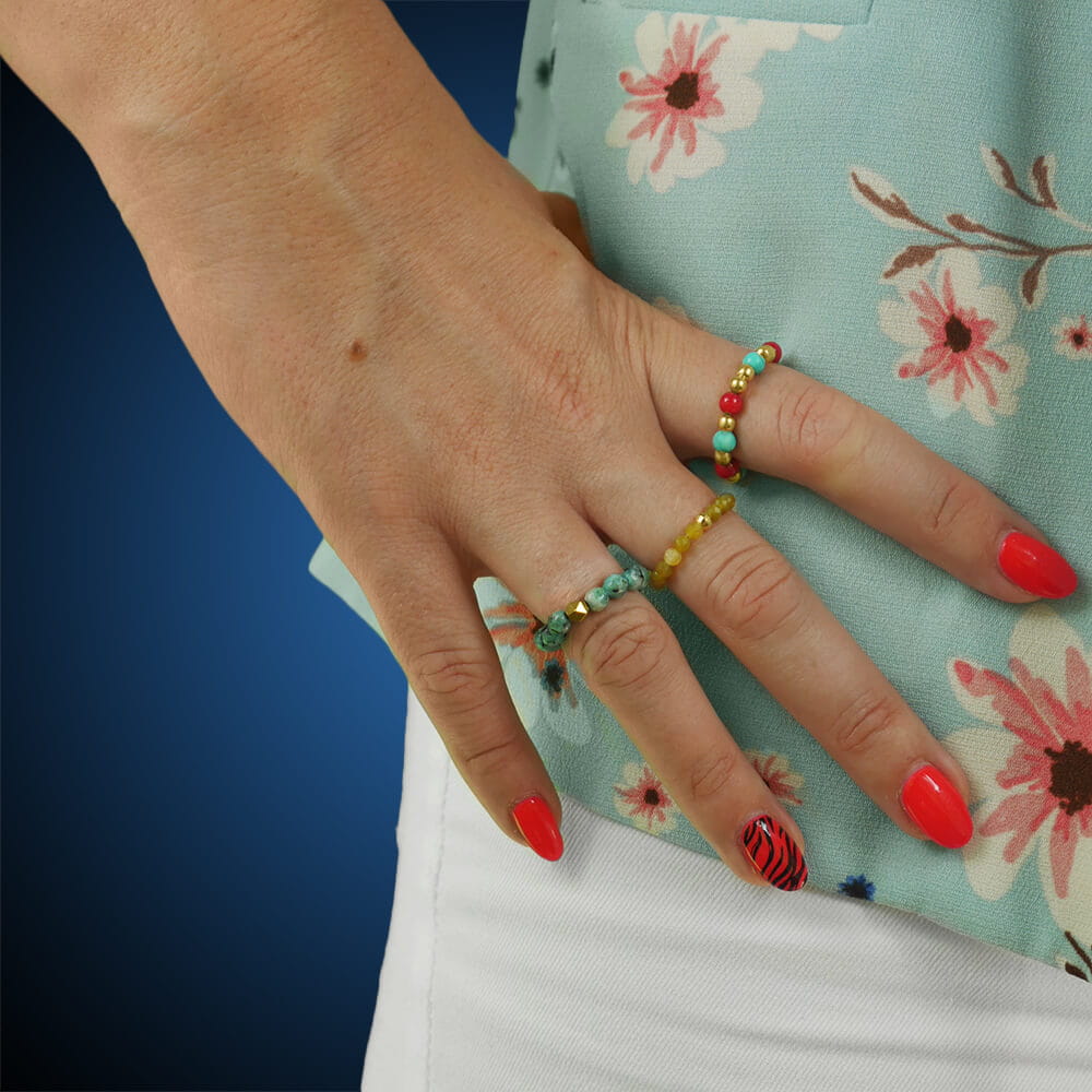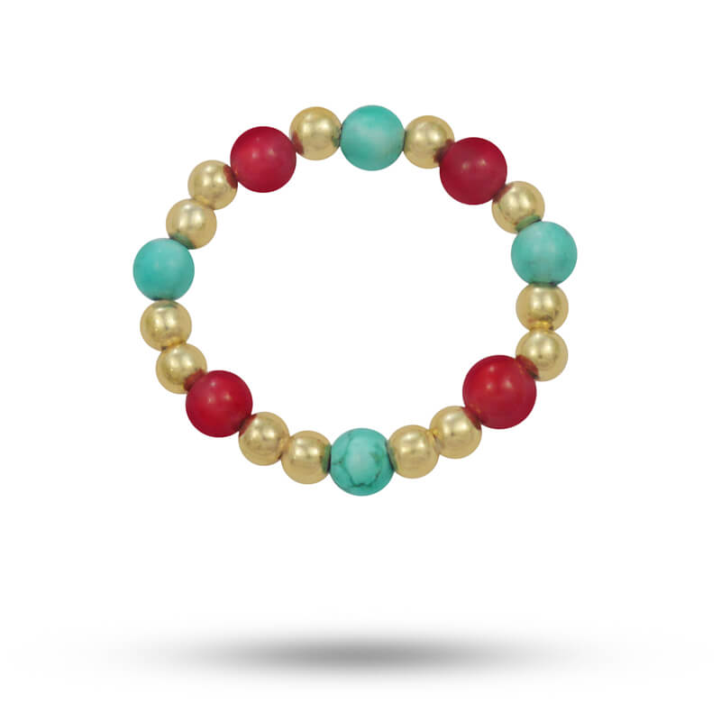 Pierścionek elastyczny kamienie koral czerwony howlit turkusowy srebro pozłacane