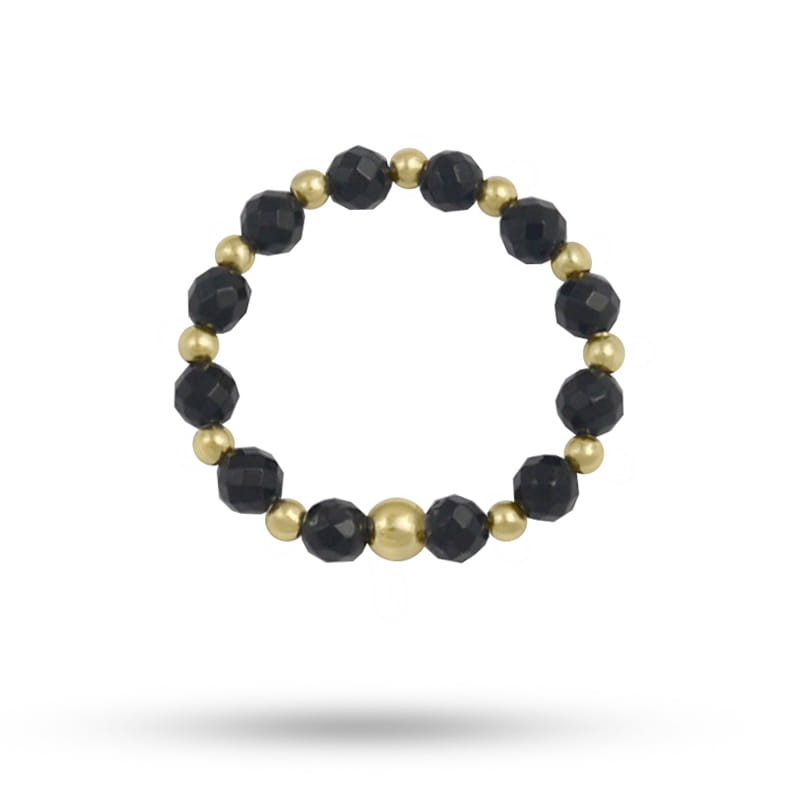 Pierścionek elastyczny z kamieni czarny onyks srebro pozłacane