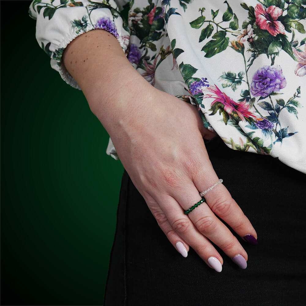 Pierścionek elastyczny z kamieni jadeit szmaragdowy fasetowany