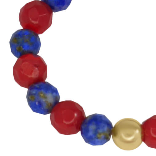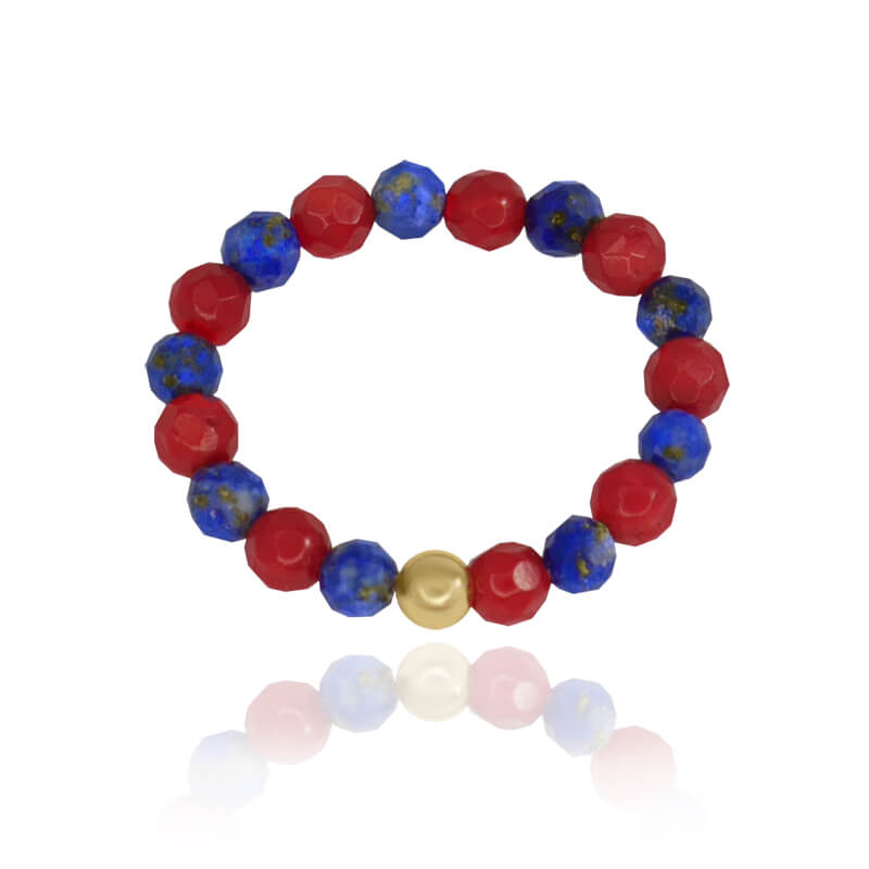 Pierścionek elastyczny z kamieni lapis lazuli koral czerwony srebro pozłacane