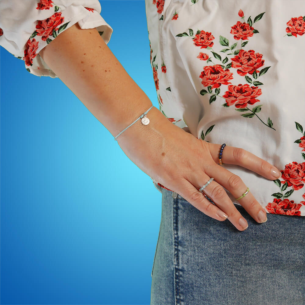 Bezbarwna, wytrzymała i elastyczna gumka pozwala w wygodny sposób zakładać bransoletki i pierścionki na niej wykonane. |