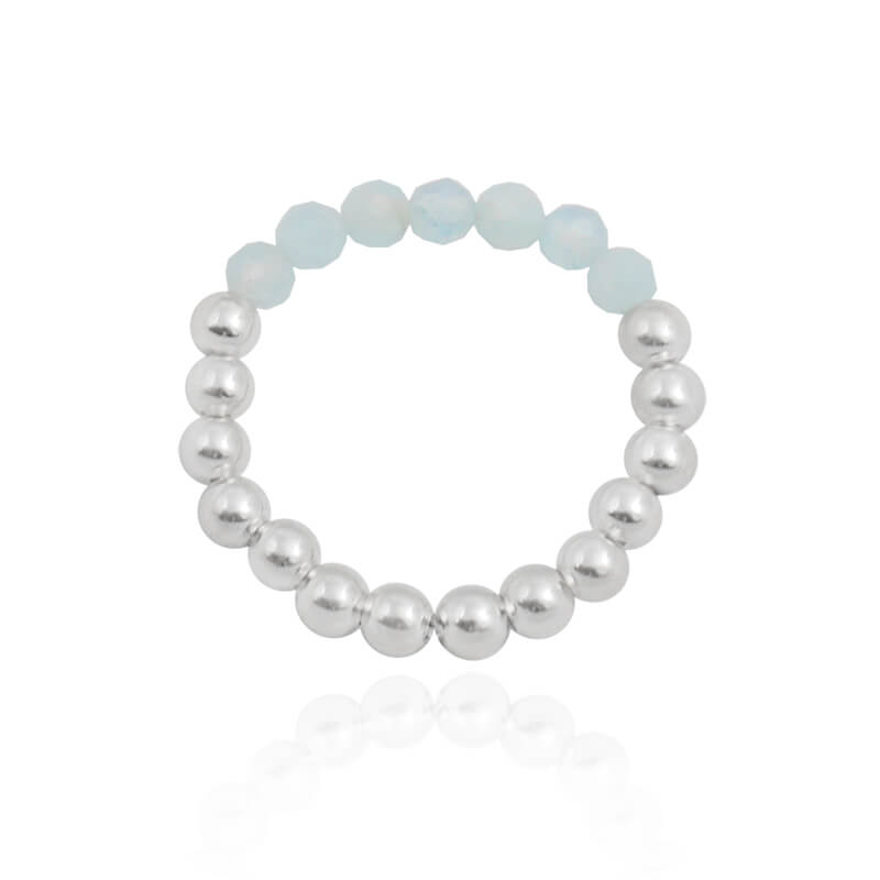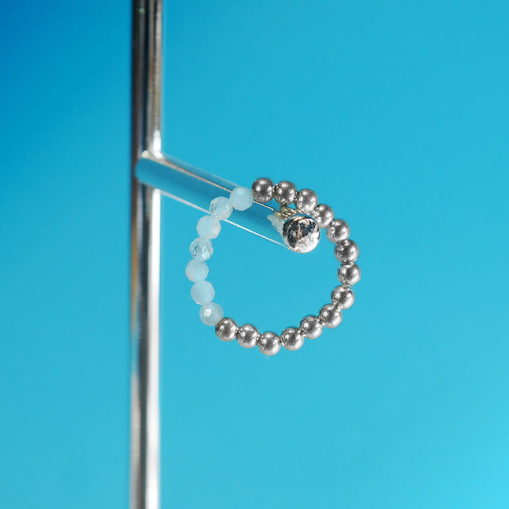 Pierścionek elastyczny z kamieni srebro akwamaryn naturalny