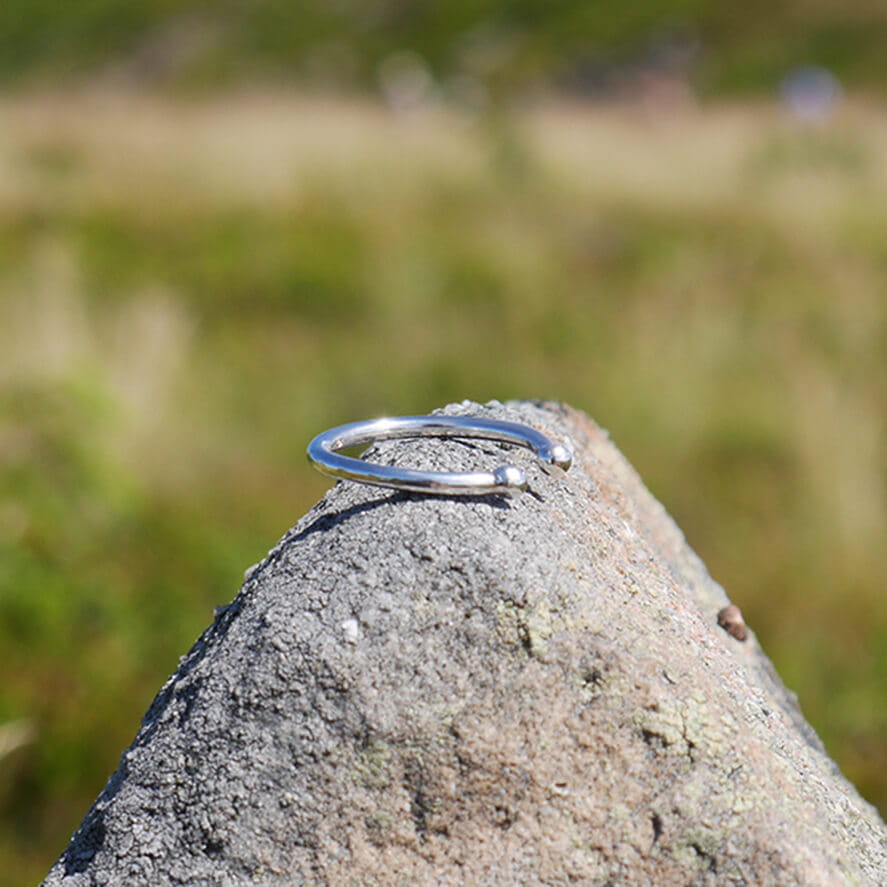 Pierścionek kobiecy ze srebra otwarty kulki drut zaokrąglony na końcach