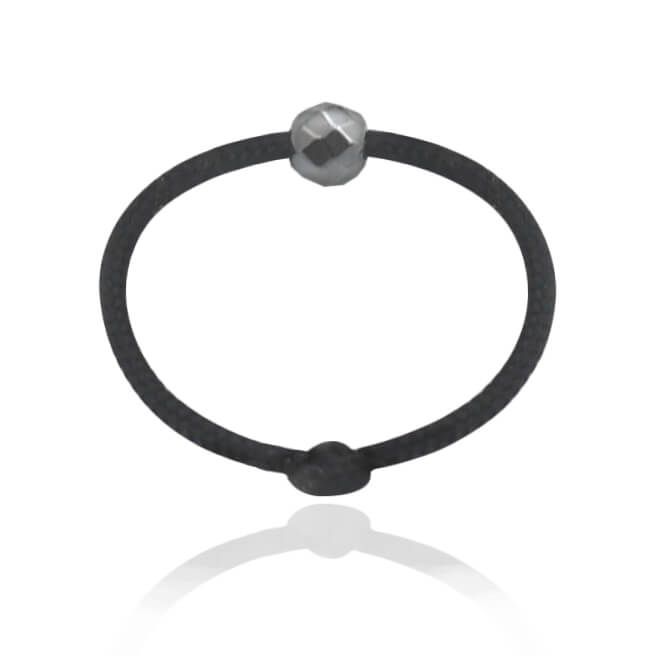 Pierścionek ze sznurka czarny kamień hematyt naturalny