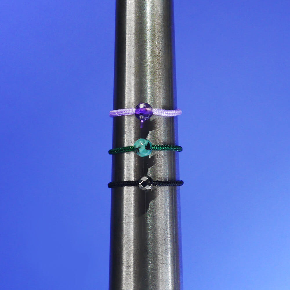 Pierścionek ze sznurka fioletowy kamień ametyst naturalny
