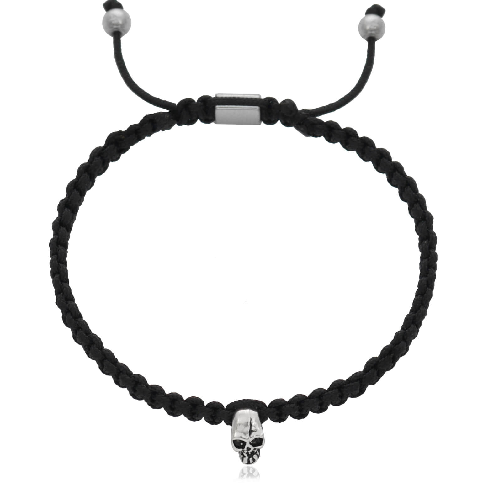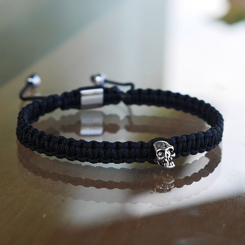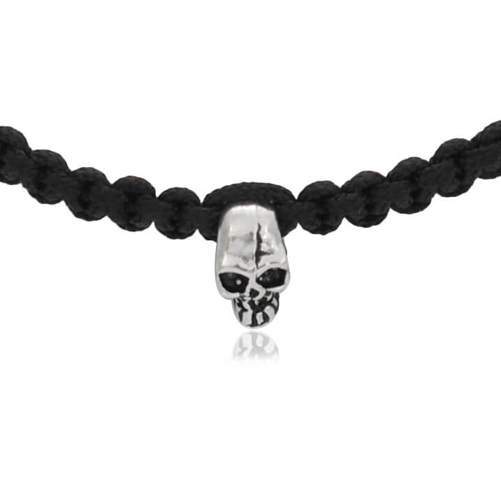 bransoletka makrama czarna czaszka srebro hematyt
