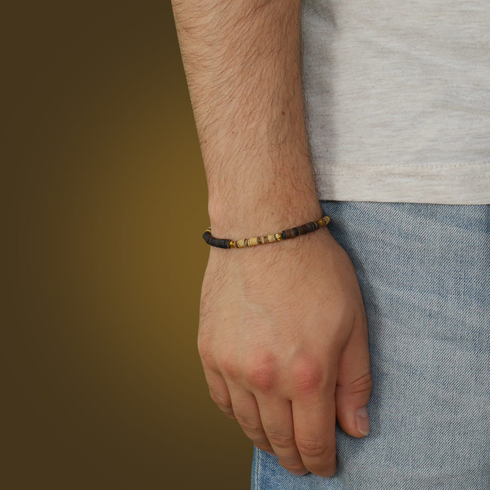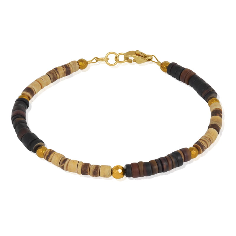 bransoletka z drewna kokosu i krążków muszla stal